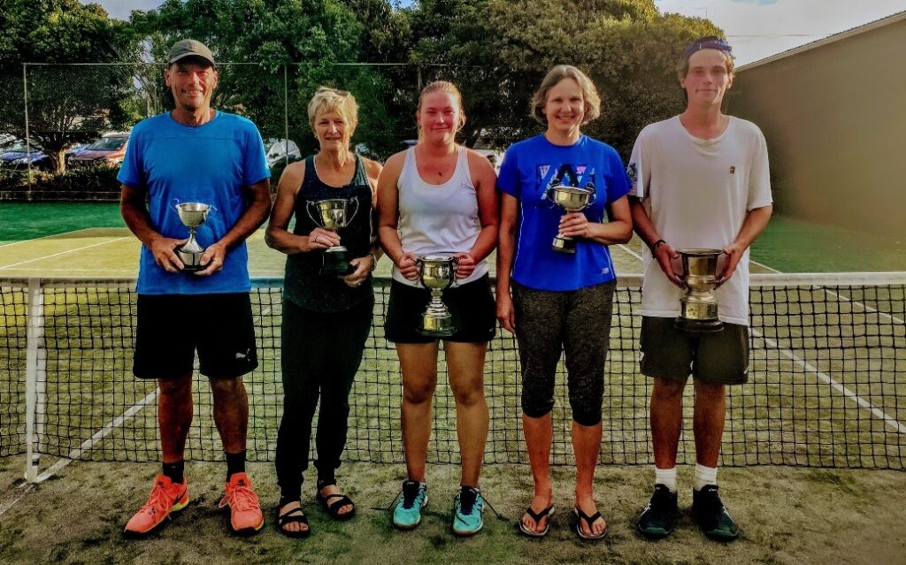 And to top off a memorable day there was the dominating on-court performance of tremendous tennis talent 18 year old Patrick (Paddy) Joss who won the Men’s doubles with father Steve, Mixed doubles with sister Emma, and completed a memorable hat trick of senior championship wins, taking the men’s singles when opponent Drew McCaul had to default due to injury.