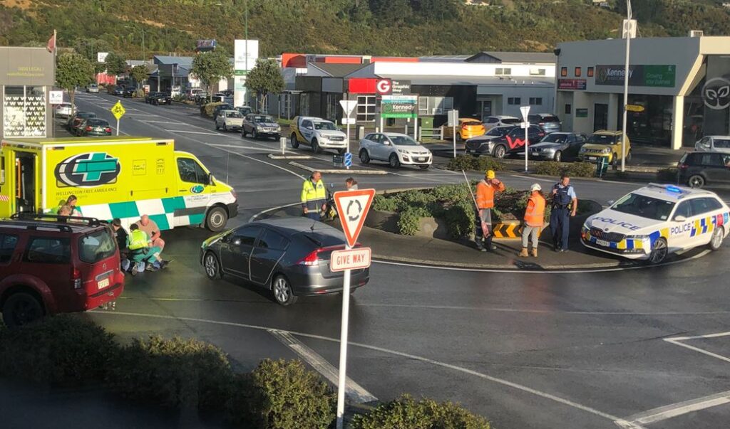 Police and medical services were quickly on the scene this afternoon when a collision between a car and a motor scooter occurred at the roundabout on the corner of Ihakara St and Rimu Rd in Paraparaumu.