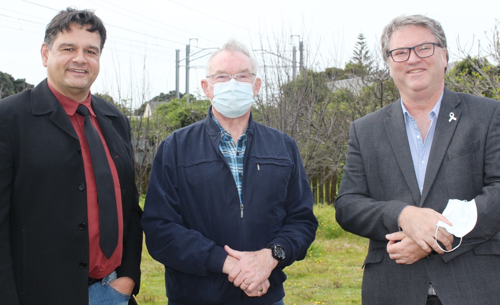 Kapiti Councillors Martin Halliday (left) and Rob McCann (right) with Dave Edwards of the Kapiti Foodback.