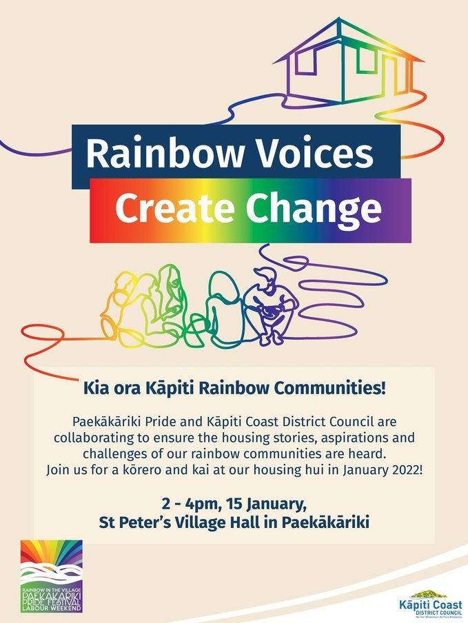 A Kāpiti Council spokesperson says the rainbow housing hui this Saturday is part of Council’s wider needs assessment to determine our district’s current and emerging housing and social requirements, examine their nature and causes, and set priorities for future action. You can read about this important mahi here: https://www.kapiticoast.govt.nz/your-council/projects/housing/housing-assessment/