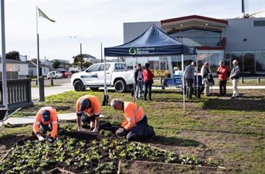 In a July planting ceremony, Council staff, Parkinson’s representatives from Kāpiti-Horowhenua and Council contractors Recreational Services, planted the tulip bulbs in beds prepared on the cultural park behind Te Awahou Nieuwe Stroom.