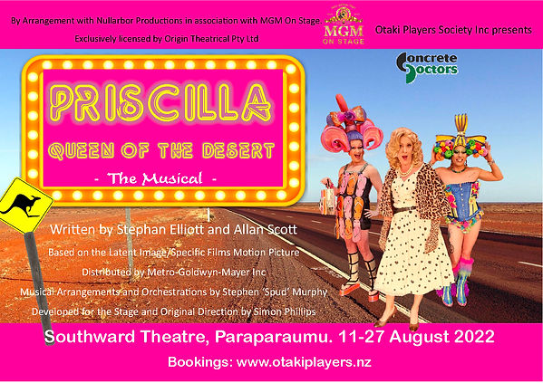 After successful seasons over recent years of Rent, Mamma Mia, The Phantom of the Opera & Hair, the Ōtaki Players are back with a glamorous production of Priscilla, Queen of the Desert.