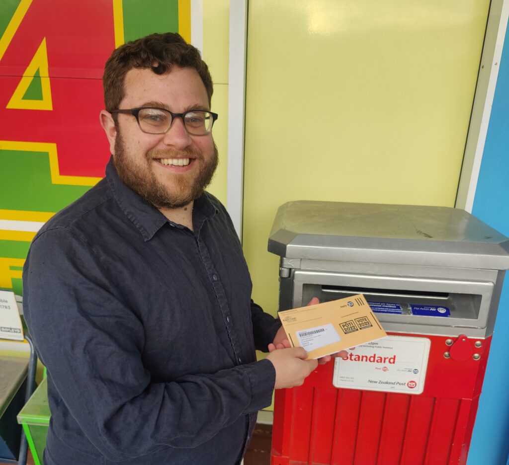 Asher Wilson-Goldman posting his ballot for the Kapiti elections