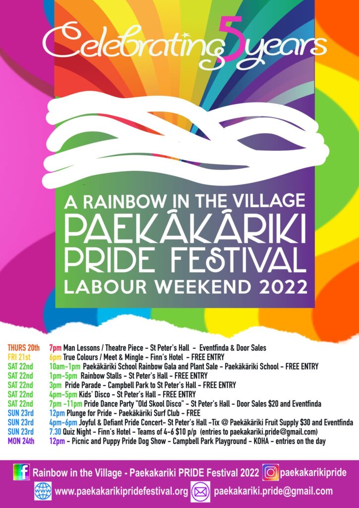 EVENTS Calendar is below. For more see: https://www.paekakarikipridefestival.org/