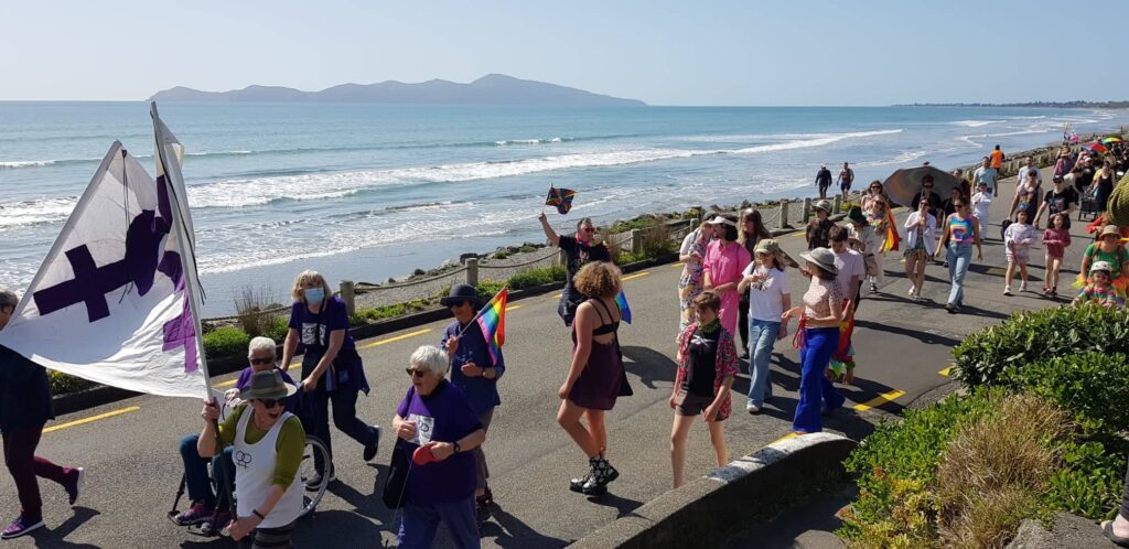 Starting at Campbell Park, the Pride Parade made its colourful and celebratory way along what is probably the most scenic march path anywhere and is aptly named The Parade with stunning views of Kāpiti Island.