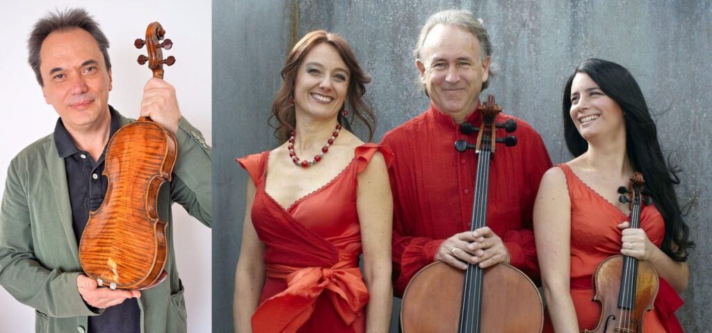 Katherine Austin, Lara Hall and James Tennant are all well-known performers who teach at Waikato University Conservatorium of Music.  Bulgarian-born Dimitri Atanassov has spent the last few years in Cremona, Italy, where he has established himself as a violin maker and restorer.  However, at present he is back in New Zealand and eager to perform again with his old colleagues.  For this concert he and Lara Hall will share the roles of violin and viola.