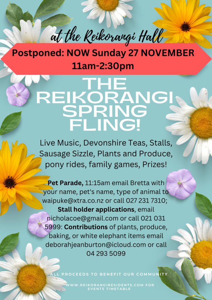 World famous on the Kāpiti Coast, the Reikorangi Spring Fling has been given a new date – Sunday November 27.
