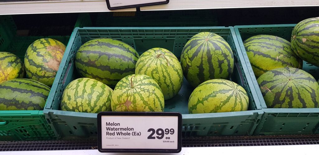 I recent scout around Kāpiti supermarkets show extraordinary prices on some food items that are supposed to be ‘in season’. Tomatoes at $9 a kilo and watermelons (not particularly large) at $29.99, butter at $9.50.