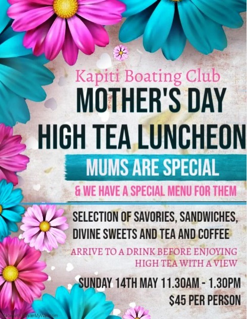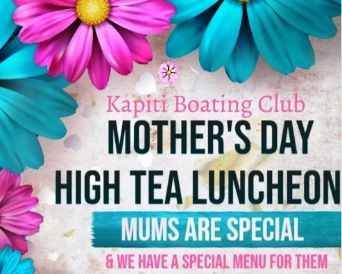 The Kāpiti Boating Club invites you all to celebrate those important Mums, Grandmothers, Foster Mothers, Aunts or any important lady in your life on Mother’s Day with a Mother’s Day High Tea Luncheon!