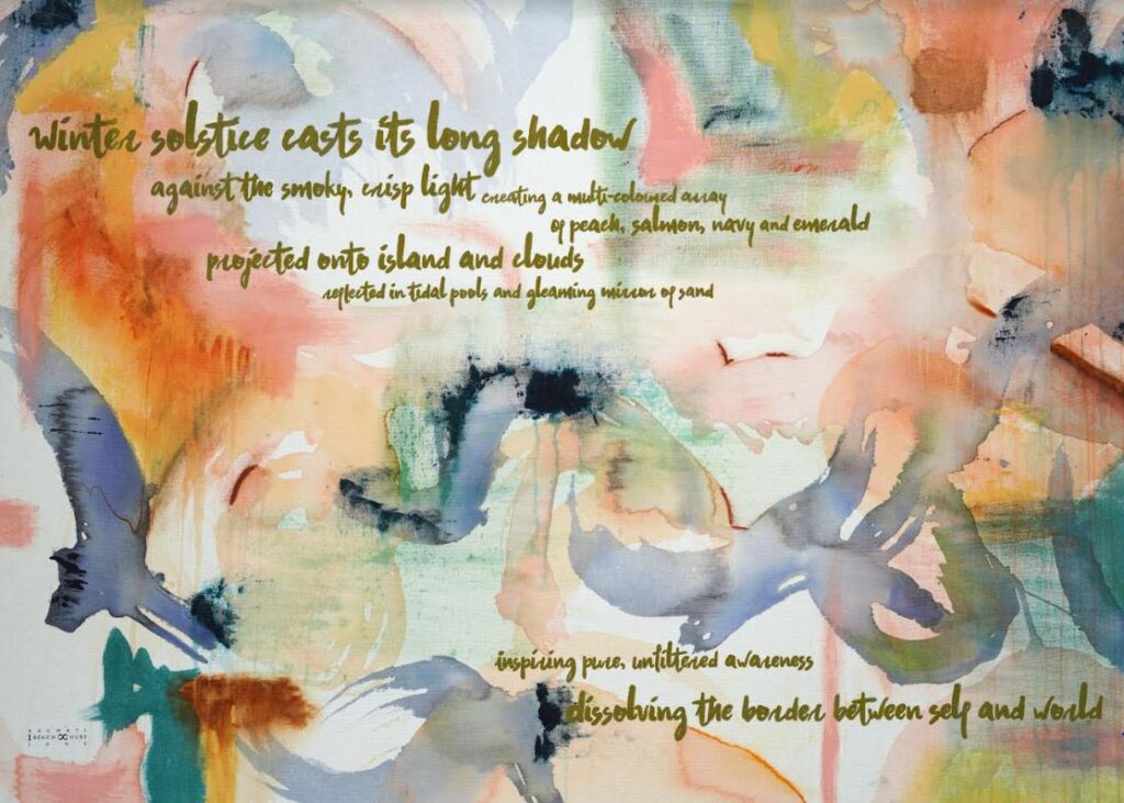 Tania says an overriding theme of the paintings and poems relates to the power of the natural world – exemplified in this case by the raw beauty of Raumati Beach – “to centre us and help us transcend the chaos of daily life.”