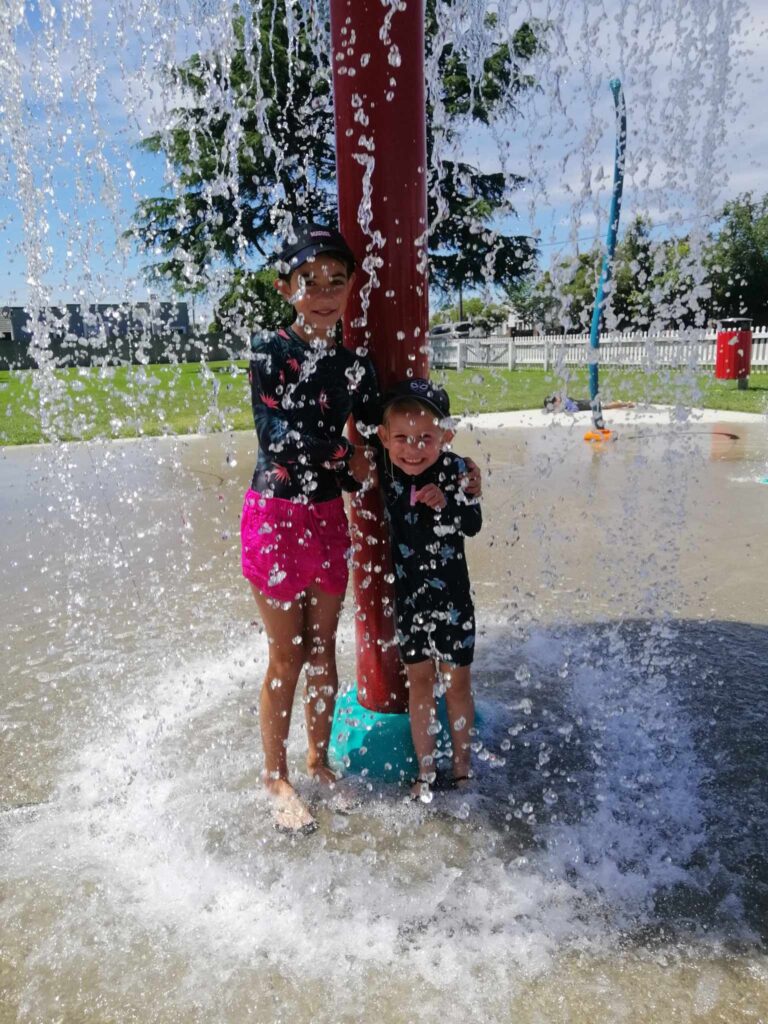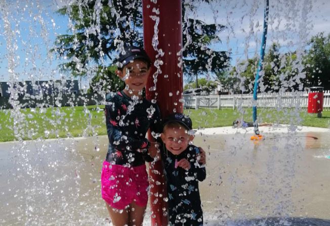 Sisters Melody and Elora enjoying cool water on a hot summer day