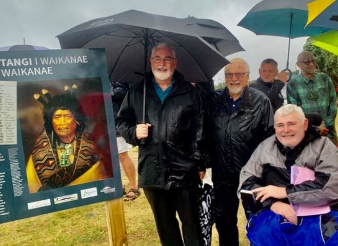 Wild, wet and blustery weather, couldn’t dampen the spirits of those attending the dedication of the Waitangi interpretive panels at the Waikanae Estuary Reserve on Saturday morning.