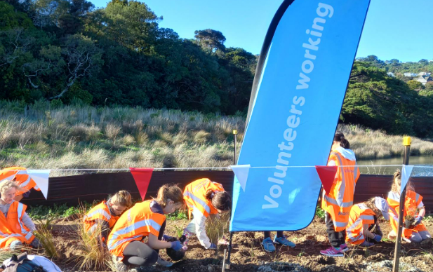 “We are really excited to have local schools participating in the restoration of our harbour,” says Natalie, Environment Educator for the Streamside School Programme. “This area is already a special and enriching place where people can observe kōtare, kingfishers, and grey herons fishing, along with eel and fish species that swim in from the Onepoto Arm of Te Awarua-o-Porirua Harbour.”
