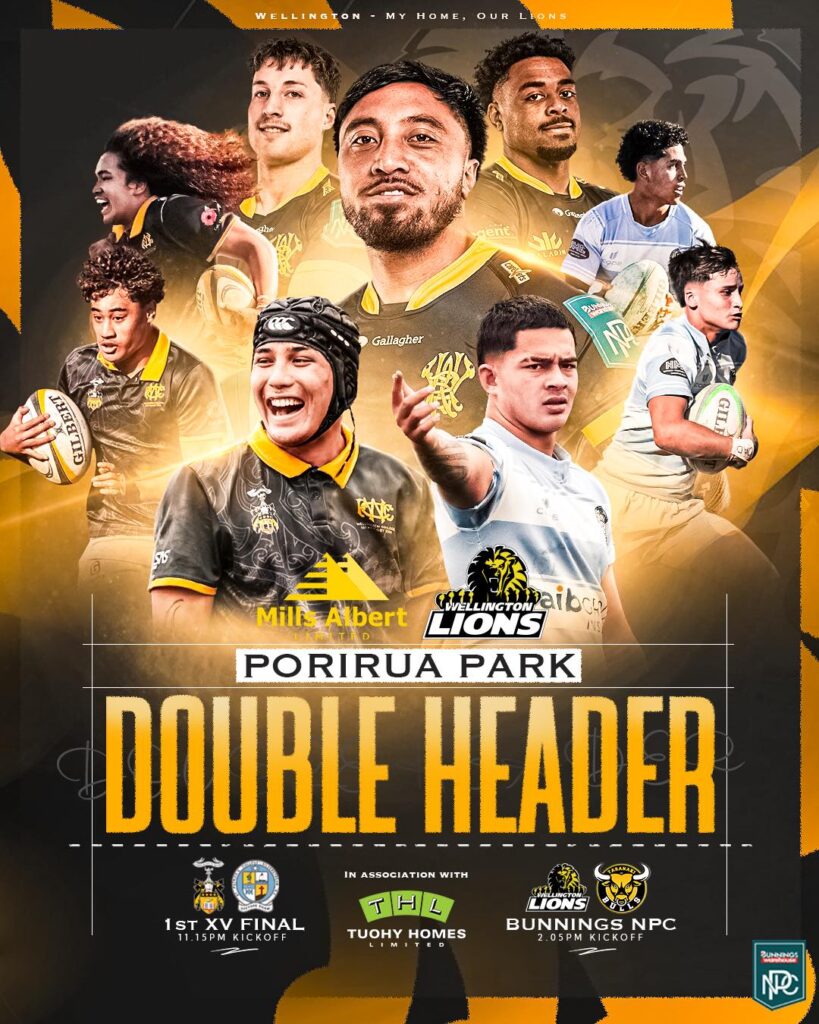 11.15am, Saturday - Wellington College vs St Patricks Silver stream. Followed by Wellington Lions vs Taranaki, Porirua Park.