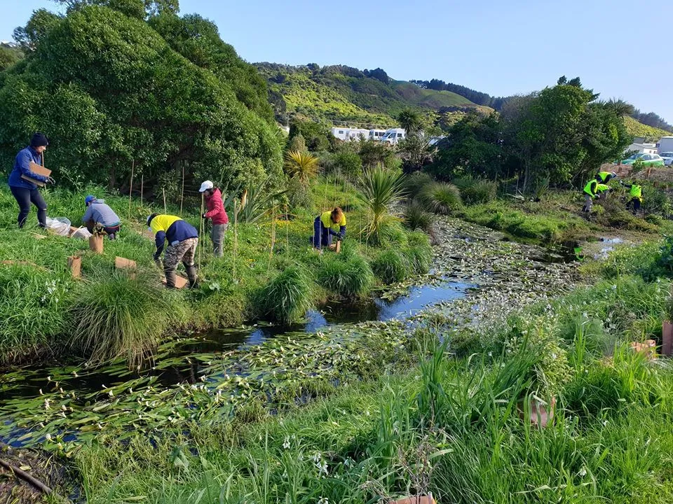 The newest addition to Porirua’s wetlands, Te Kūkūwai o Toa, was constructed in 2022 in partnership with Wellington Water, Porirua City Council, and Ngāti Toa Rangatira, with funding from the Ministry for the Environment’s Freshwater Improvement Fund.