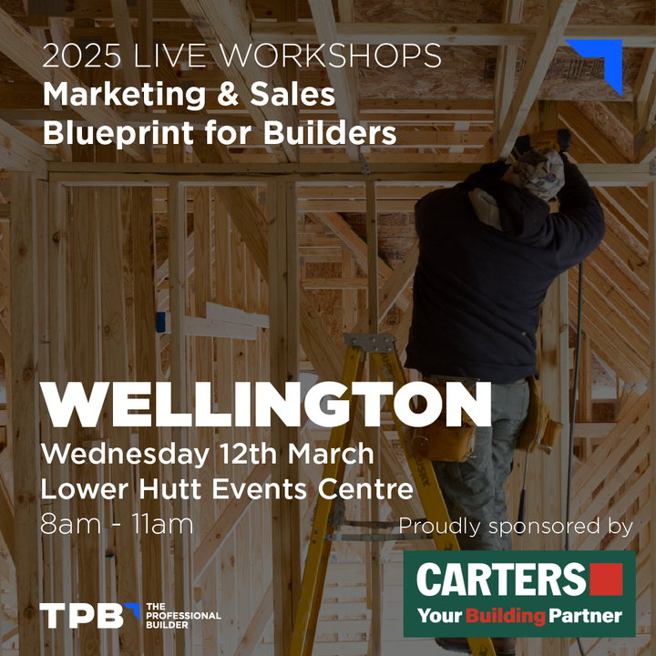 A free workshop designed to help residential builders improve their marketing and sales strategies is coming to the Lower Hutt Events Centre on Wednesday, 12 March 2025, from 8am to 11am.