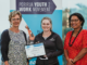 Gabrielle Rikihana with the Sir Kingi Ihaka Award from Creative New Zealand, recognising her contribution to strengthening the continuity of Māori culture.