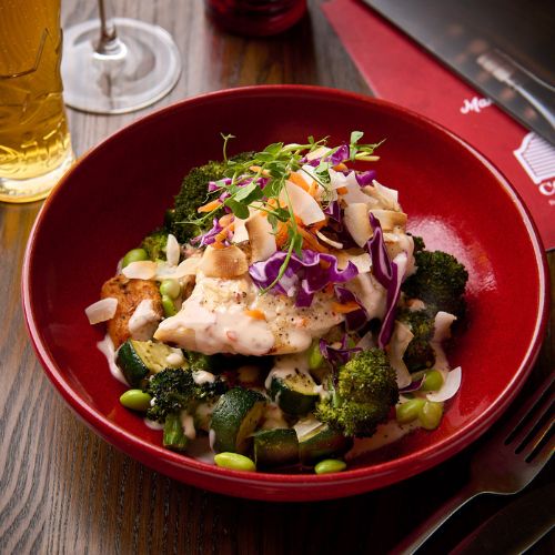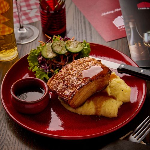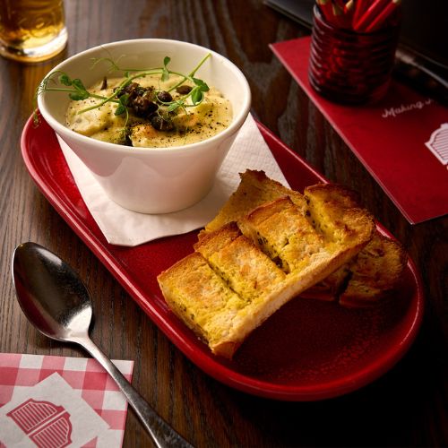 Kick off your meal with signature starters like the Baked Camembert – a whole wheel baked to gooey perfection with caramelised onion relish, or the Seafood Chowder, rich and creamy, served with a side of garlic bread that’s perfect for dipping.