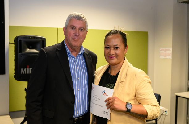 David Bennett, Whitireia Foundation Trustee with scholarship recipient Dee Pahina-Kopa (Photo/Supplied).