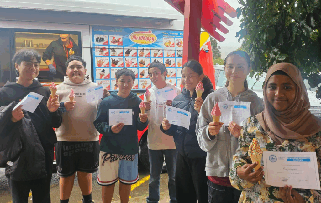 The term concluded with the Ake Runga Assembly, where classes shared highlights from Samoan Language Week and celebrated student achievements. Recipients of the Ake Runga awards were recognised for their dedication and progress, while a new initiative celebrated students with 90.1% to 100% attendance — capped off with a meat pack draw won by Manawa’s whānau.