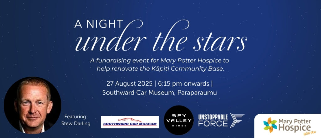 At the Gala Dinner you’ll savour a delicious three course plated dinner by Relish Cafe and Catering, accompanied by award winning Spy Valley wines and beer from DVB. Enjoy entertainment from some of Kāpiti’s up and coming musical talent and be blown away by Stew Darling’s incredible stories, all whilst supporting Mary Potter Hospice to renovate the Kāpiti community facilities. In addition, you will have a chance to bid on a collection of exciting auction items.