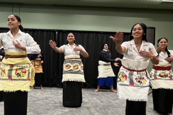 Students from Aotea College captivated attendees with two traditional dances before the official raising of the Tongan flag, accompanied by the national anthem.