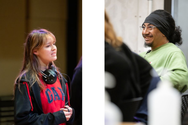 (Actors preparing in rehearsals).