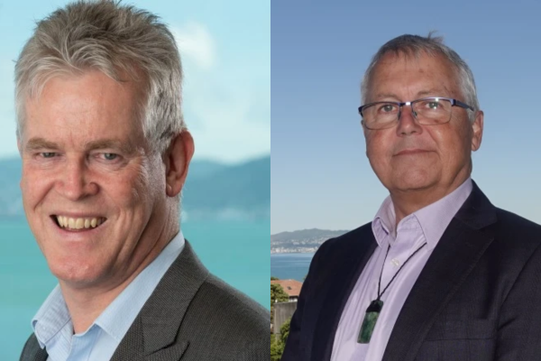 Pat Dougherty (left) and Wayne Maxwell (right) former Kapiti Coast District Council chief executives now leading Wellington Water, are facing criticism over deep management failures revealed in a $37 million technology overhaul.