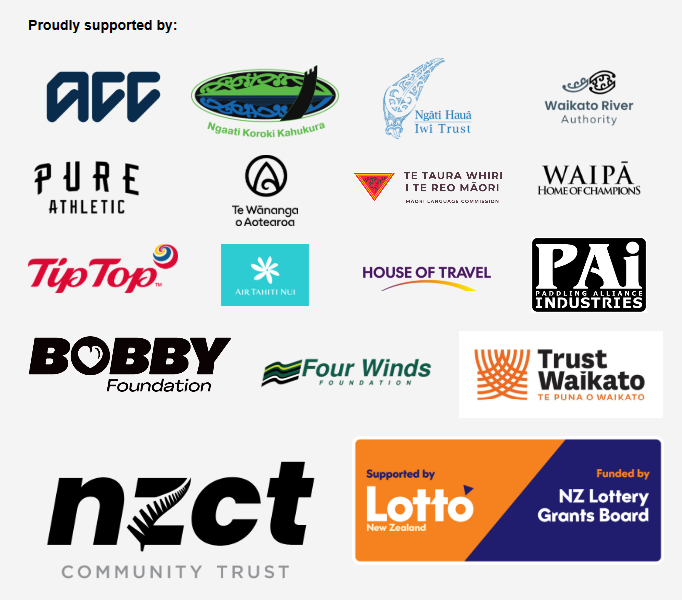 The Sprint Nationals are organised by Waka Ama Aotearoa NZ and are supported by mana whenua Ngāti Korokī Kahukura and Ngāti Hauā.