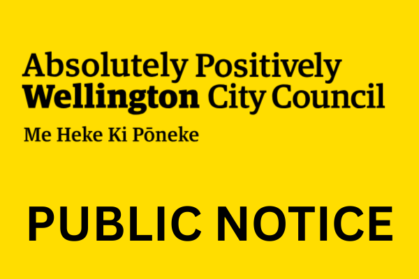 Yellow Wellington City Council public notice graphic with black text announcing an official notice.
